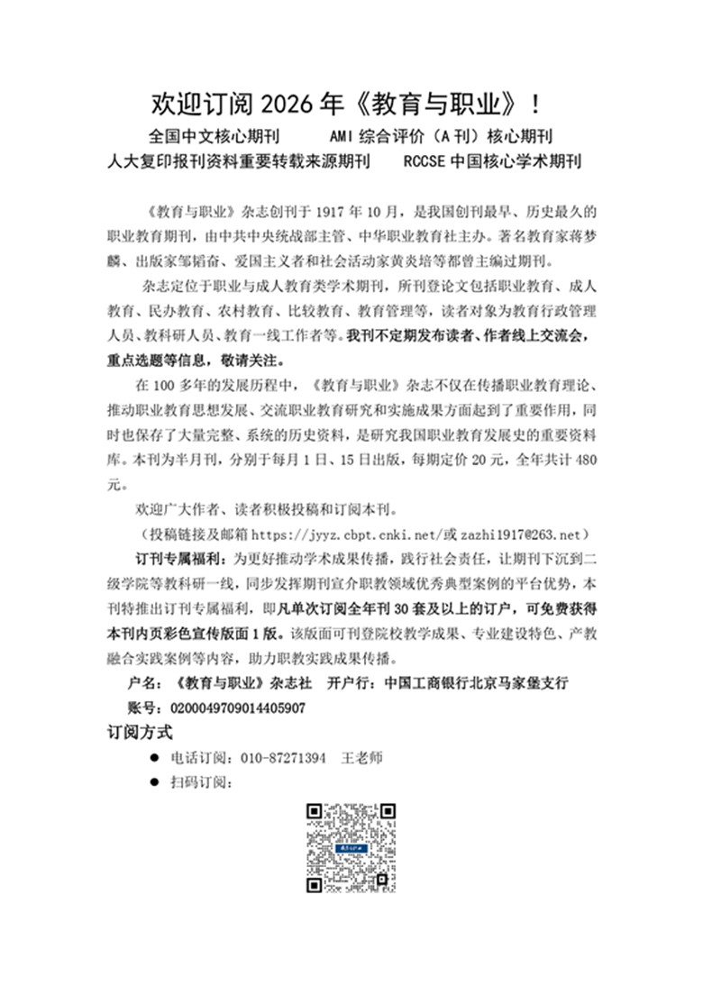 欢迎关注《教育与职业》杂志微信公众号